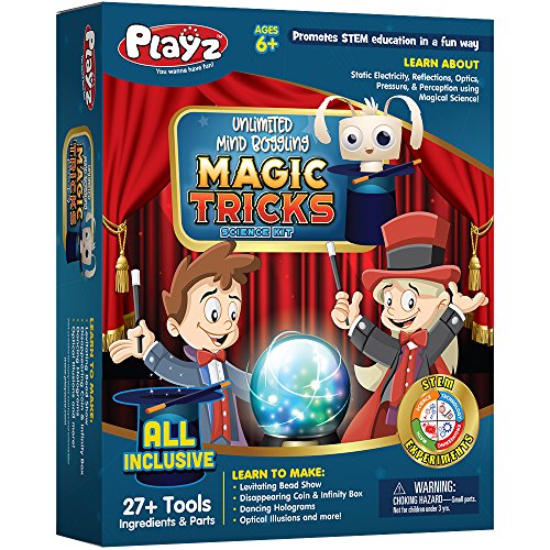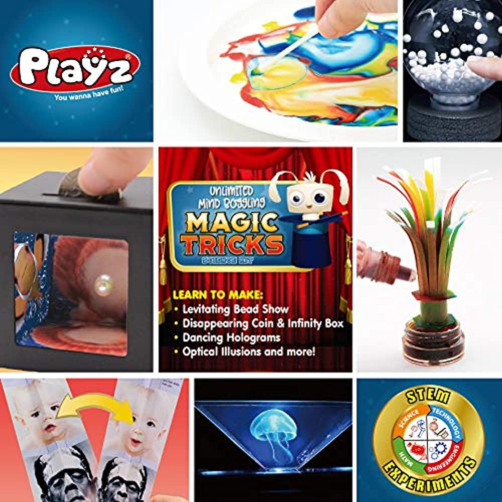 Playz Unlimited Magic Tricks Set For Kids With Science Experiments To Create Dancing Holograms Levitating Bead Shows Disappearing Coin Infinity Box Optical Illusions For Boys Girls Ages 6